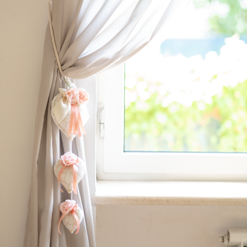 Una decorazione da usare come vuoi! Come sottochiave, come fuoriporta o come embrasse. Infatti in dotazione ci trovaerai un cordoncino che servirà a raccogliere le tue tende con quel tocco romantico!