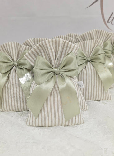 Sacchetto confezionato con 5 confetti e fiocco.