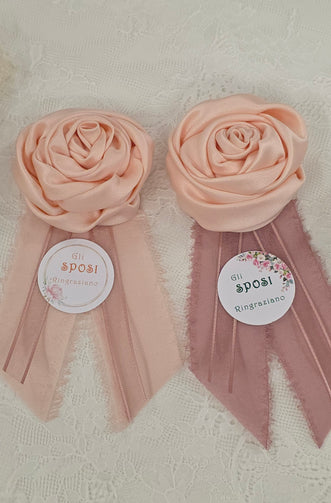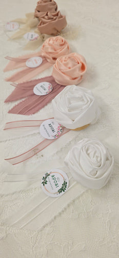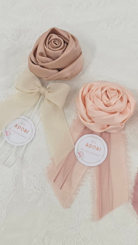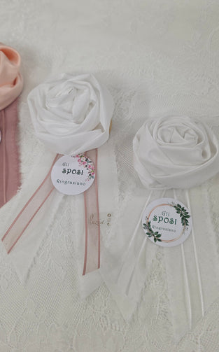 Rosa profumata artigianale fatta a mano in tessuto raso e taffetà. Completo di TAG personalizzato.